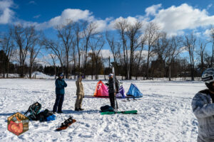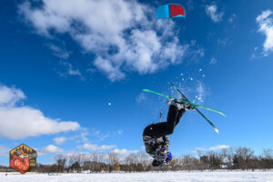 The weather gods blessed us with 0C temperatures, sun and a light wind today. I headed down to Britannia Beach to catch up with and hopefully photograph some of the wind addicted Ottawa crew. The initial winds were pretty light but they picked up for a bit and the kites were up in the air and the doing their thing. Snow conditions were very nice, icy cold snow that was soft and fairly deep. The light conditions were pristine for mid day action shots, I blasted through a ton of frames before hitting the road to head home.